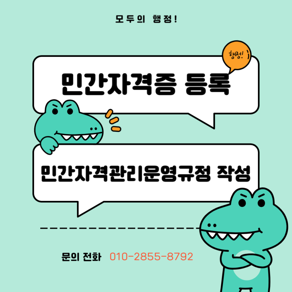지금 바로 내 분야의 전문성을 민간자격 등록으로 증명하고 싶다면 연락주세요. 준비서류 안내부터 등록까지 원스톱으로 업무 진행해드리겠습니다.